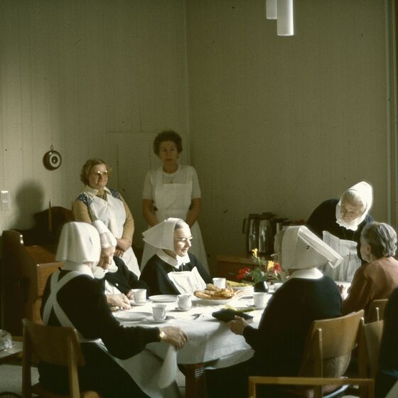 1975: Errichtung der Haus- und Familienpflege, Umbau des sogenannten Bettensaales zu Einzel- und Doppelzimmern.